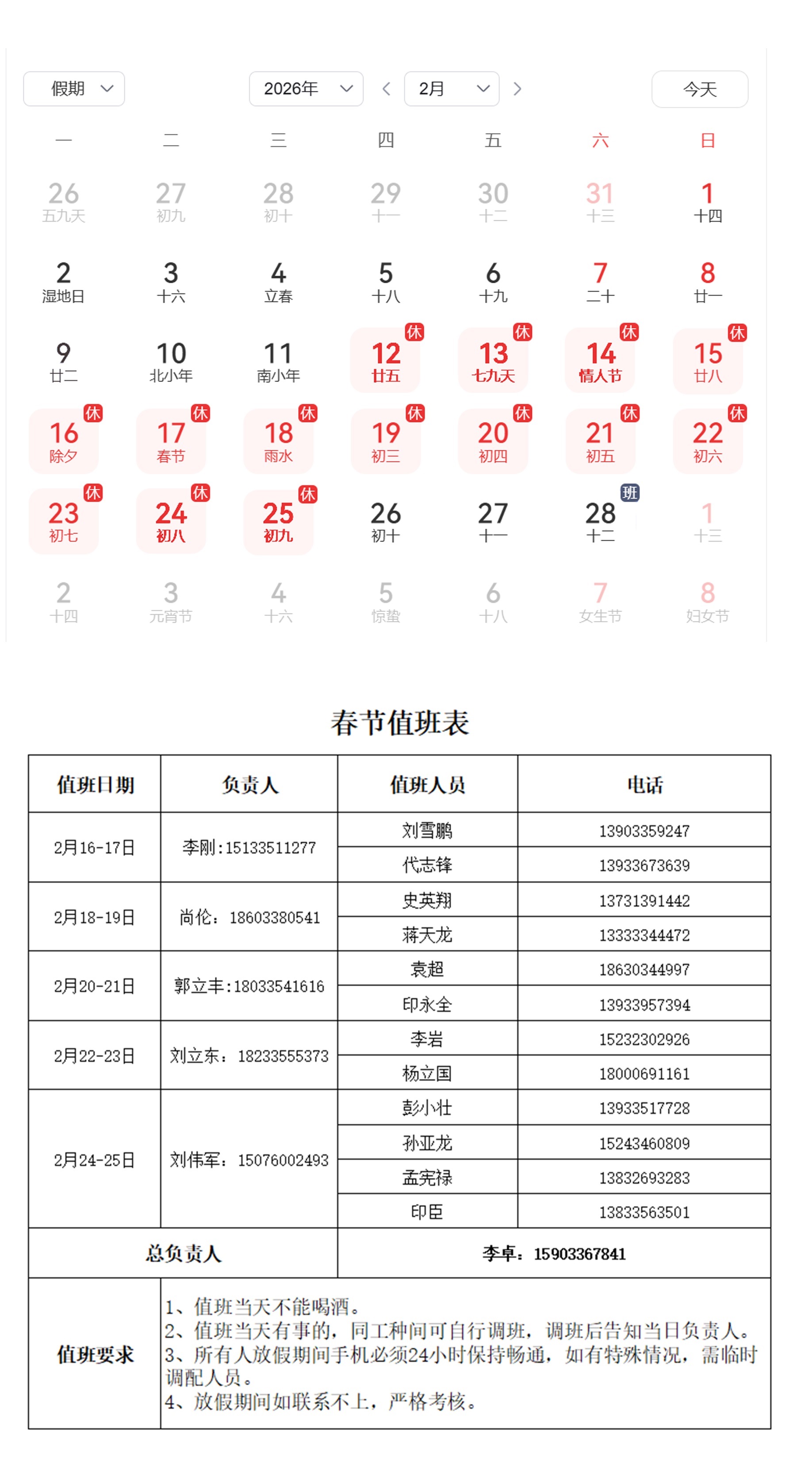 2月12日(周四)至25日(周三)放假調(diào)休,共14天2月28日(周六)上班調(diào)休